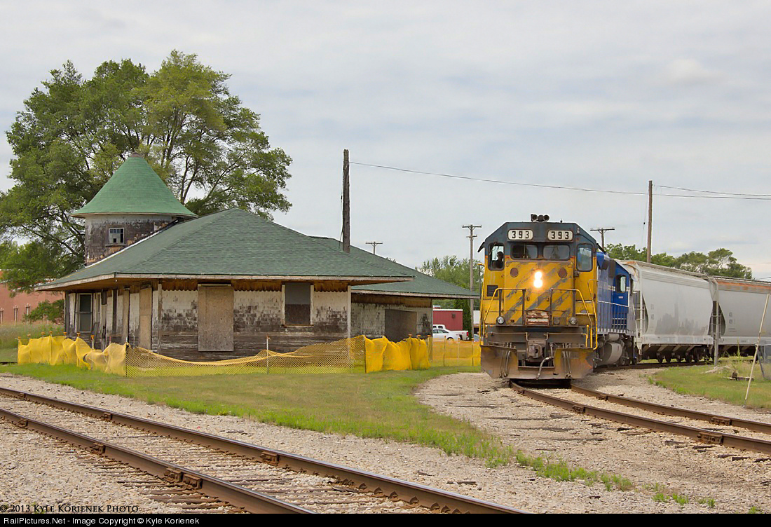 | After a lengthy switch job at the NorDry facility in Clare, MI., the GLC ONTN backs down into the yard past the dilapidated former Ann Arbor Depot that is in desperate need for a restoration project. |