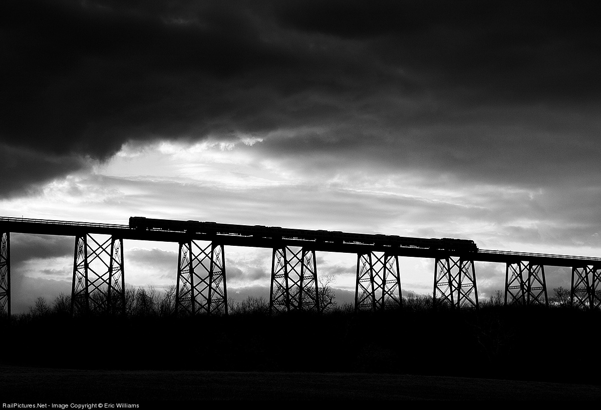 Crossing Moodna Viaduct under threatening skies, this westbound train heads towards Port Jervis.