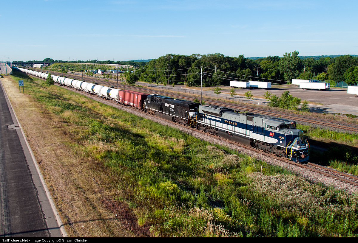 The NS Wabash heritage unit makes its debut appearance in Minnesota.