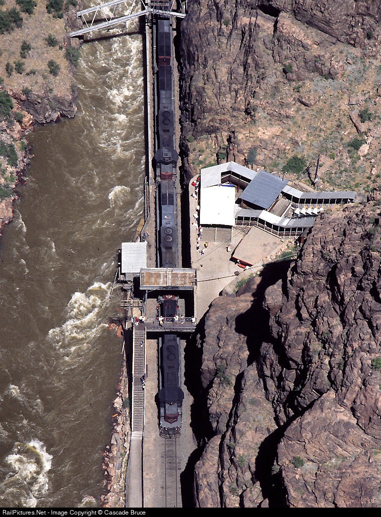 Unique view looking down into Royal Gorge from 1053 foot high suspension bridge.