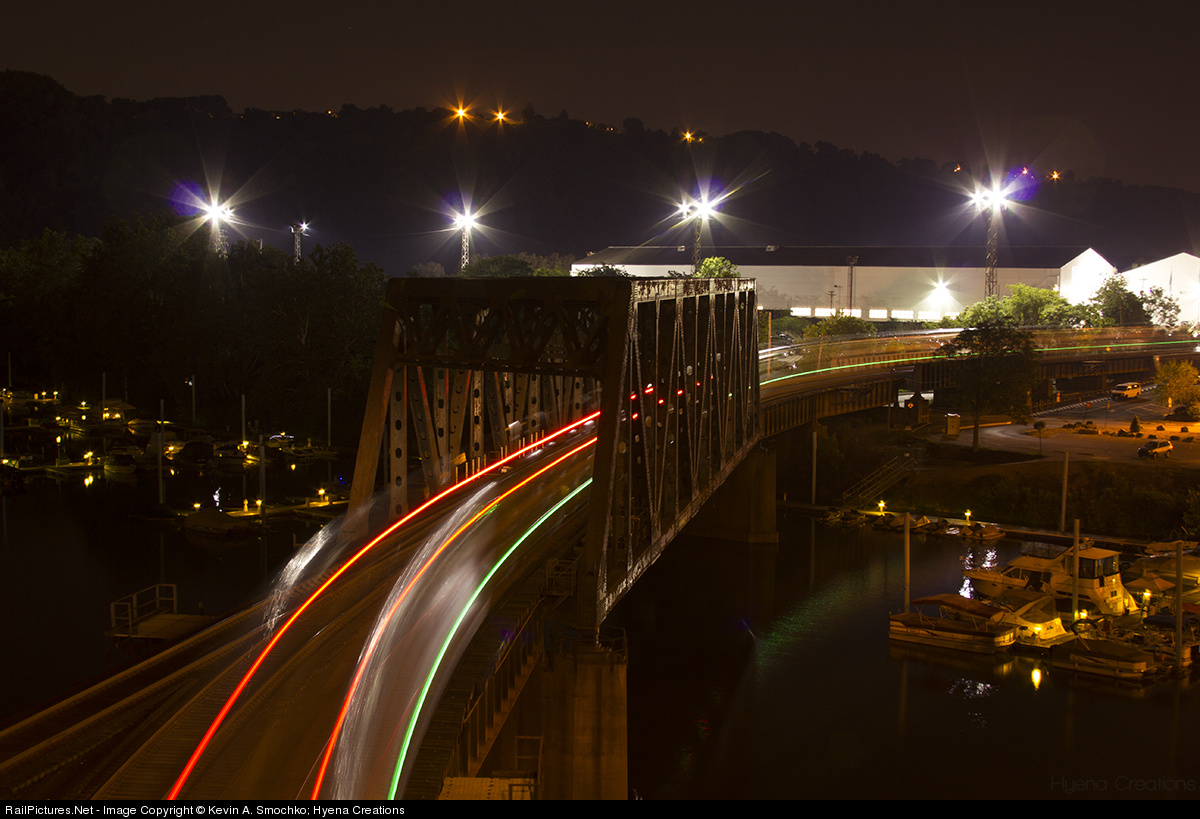 | The Silver Snake slithers with it's onboard passengers into McKeesport at around 11:15PM, being 20 minutes late to his next stop. He must quickly pick up speed as the trailing lights disappear on the bridge. |