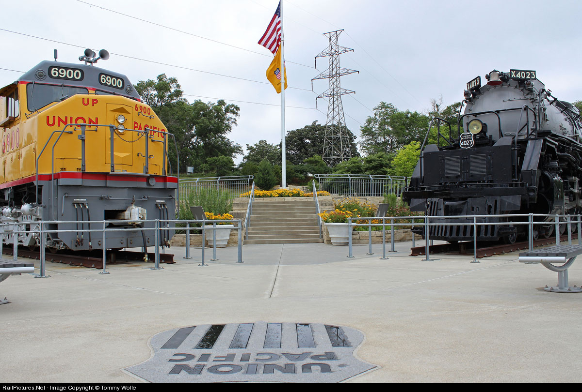 | I wanted to get the UP 6900 (DDA40X on left of photo), the UP 4023 (4-8-8-4 Big Boy Steam Locomotive), the American Flag and UP flag on the flag pole in the middle and the Union Pacific Logo in the foreground all in one shot. This Shot took me 10 minutes to get right with the framing and exposures and all that stuff to make this shot as successful as it was. |