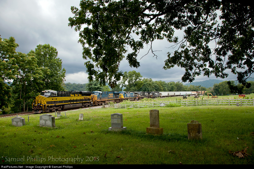 Soft summer light and a tranquil Southwestern Virginia scene set the stage for eastbound time-freight No. 38Q, as it whines down the 1.5-percent grade through Shawsville, Va., behind an interesting consist to brighten up the somewhat gloomy afternoon.