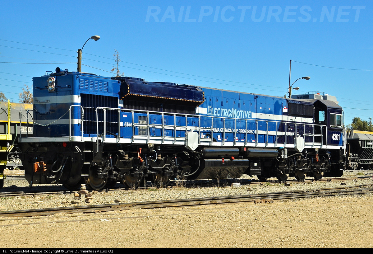 Owned at EMD locomotive, GT46AC model with corporative scheme, which is currently in the city of Vallenar, under the control of FERRONOR railway company for testing its iron trains, given the purchase of 6 new EMD units GT46AC already arrivals at and Chile. Originally of 4300 HP, the new locomotives have 4600 traction HP, and has the microprocessor control system EM2000, besides bogies type "steerables" HTCR model.