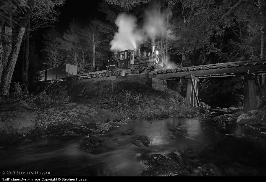 With engineer Rick Sisson at the throttle, WW&F Ry No. 10, heads south across Humason Brook Trestle with an all freight consist.
