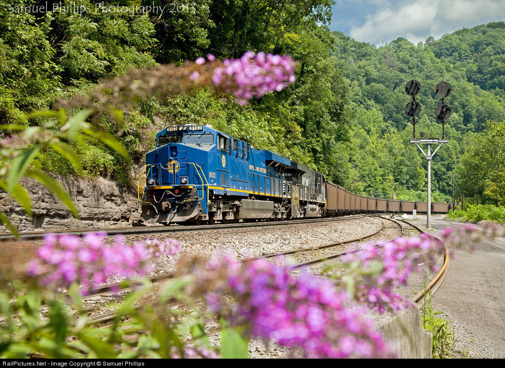 Flowers, CPL's, and a heritage unit! All set the stage for this pretty scene depicting the Norfolk & Western heritage unit shoving hard on the rear of eastbound loads through the community of Keystone, W.Va., on a beautiful summer morning along the busy Pocahontas mainline.