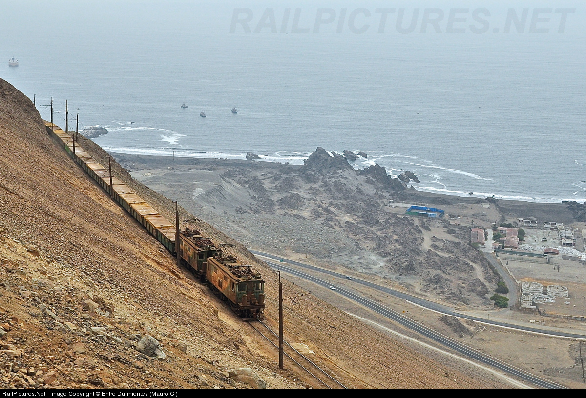 One of the MONUMENTS most recognizable of the Tocopilla coastal, old but still brilliant BoxCab 289A GE Electric Locomotives built in 1927, no major problems up the slope of 4.1% from seaport to the courtyard of "Barriles" for the gorge of same name ... In search of Salitre from Maria Elena. In the background, Tocopilla Bay, a place from which it came just a couple of miles. Well down Route 1, road to Iquique. A beautiful day, although the weather is very cloudy and foggy camanchaca type.