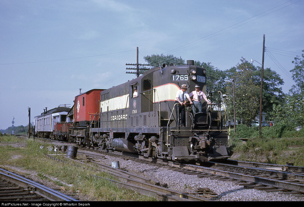 Seaboard Work Extra 1769 has the (original) Norfolk Southern derrick No. 900 and wrecker outfit in tow approaching Apex, NC. Several hours earlier, just south of this location, Seaboard train No. 75 experienced a massive derailment when recently laid 132 lb. welded rail spread under the fast moving train due to a heat kink caused by unusually high temperatures. Work Extra 1769 will get "workwise" with the NS derrick on the north end of the derailment site, while the Hamlet derrick will approach from the south. The Road Foreman and brakeman are chatting as the train approaches.