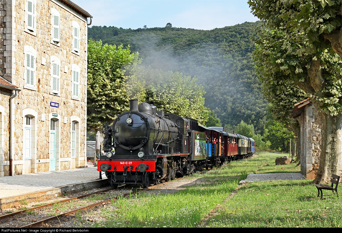 | 140 C 27, a former SNCF steam engine, is pulling tourist trains of association Train à vapeur des Cevennes. The line between Anduze and St Jean du Gard is 14 km long. |