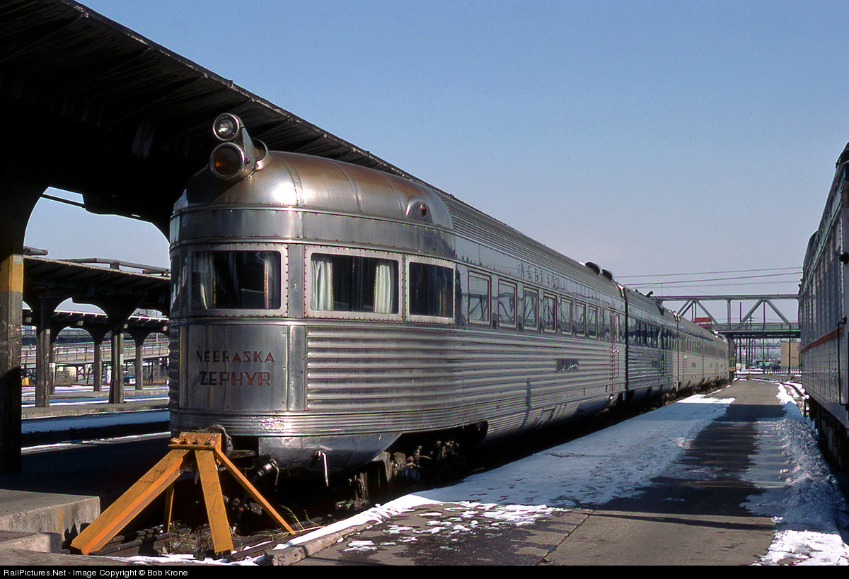 CB&Q parlor observation car Jupiter is on the rear of the five car NEBRASKA ZEPHYR set behind SCL EMD 501. This articulated set of equipment was sold to Saudi Arabia and is the mate to the set at the Illinois Railway Museum that is pulled by an EMD E5. Saudi Arabia also purchased 16 Budd-built Susquehanna commuter coaches in the 1950s.