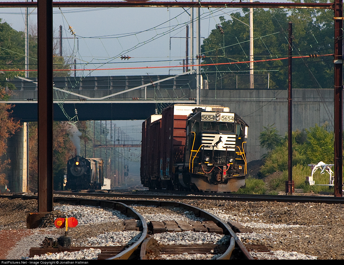Two uncommon movements are caught in one frame. In a relatively rare daylight move, an NS local hustles through Leaman Place under Amtrak's wires. Most NS operations on the former Pennsy's Philadelphia to Harrisburg main line run under cover of darkness, when traffic levels are low, to keep clear of 110mph passenger operations. Meanwhile, off to the left of the photo the 107-year old 475 picks up a string of freight cars destined for East Strasburg. Steam-powered revenue freight may be rare in the 21st century US, but it's business as usual for the Strasburg Railroad.