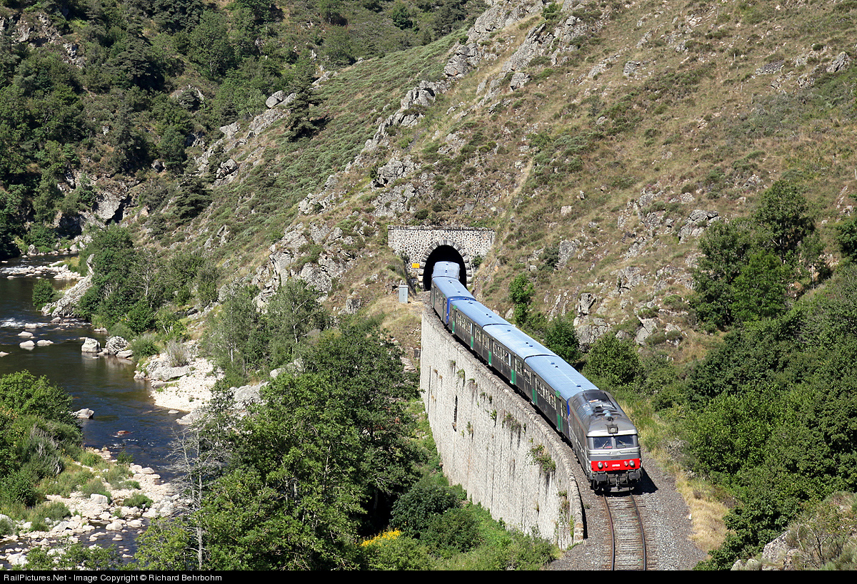 An unknown BB 67400 is pulling the tourist train from Langeac to Langogne through the Allier Canyon.
