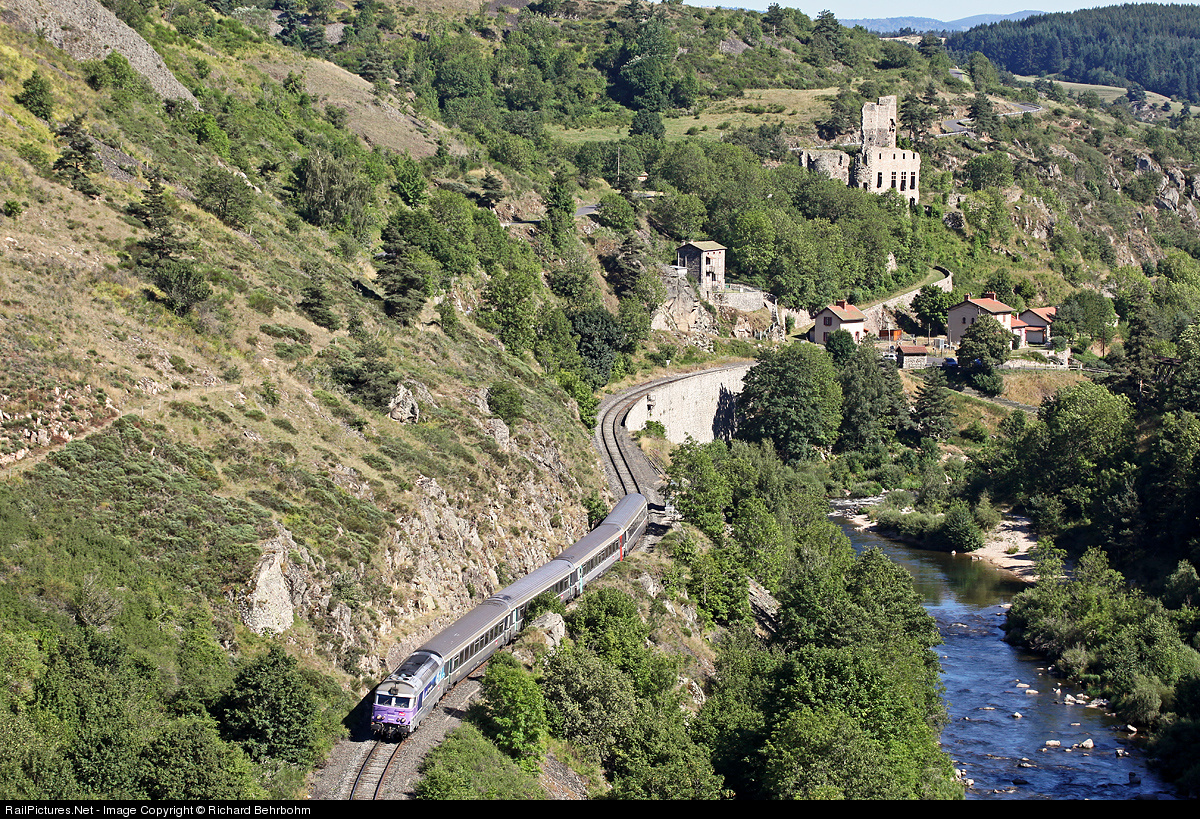 | An unknown BB 67400 is pulling the Intercité Nîmes - Clermont-Ferrand through the Allier Canyon.