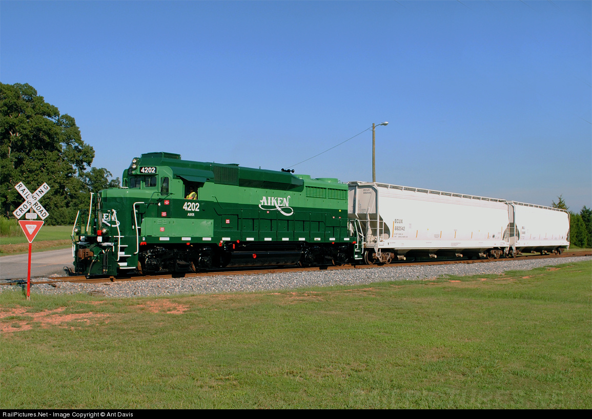 Here is AIKR 4202 in the operation's debut paint scheme leading local Z590-06 out of Belton Yard with two cars for interchange to CSXT from Pickens Railway. This is one of the test runs of the unit before it is shipped to it's new home in Aiken. Photo taken on Railroad Property. Photographer is an employee of the company. |