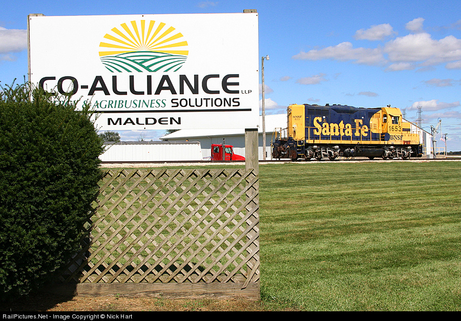 RailPictures.Net Photo: BNSF 1653 Private EMD GP9u at Malden, Indiana by Nick Hart