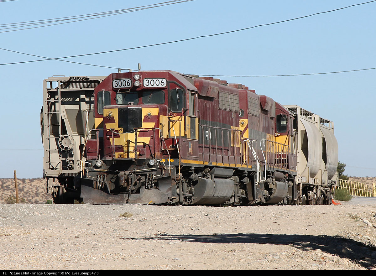| 2 ex Wisconsin Central GP40's, 3006-3000 now lettered for PRLX are used as local power at the Oro Grande plant along the BNSF Cajon Sub. |
