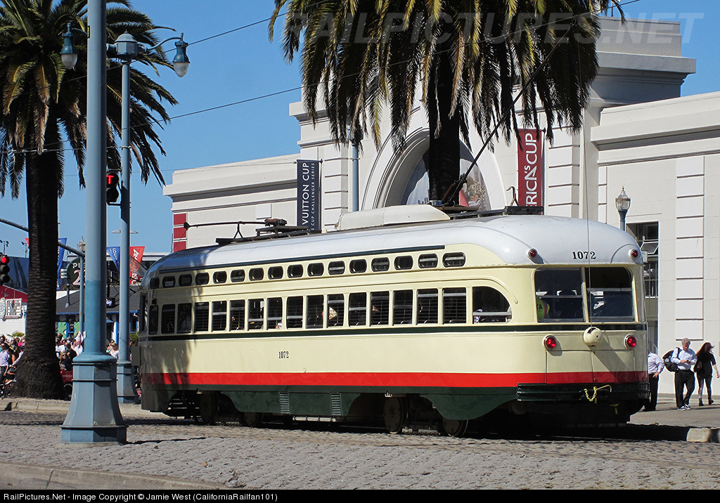 RailPictures.Net Photo: MUNI 1072 San Francisco Municipal Railway St. Louis Car Co. PCC at San Francisco, California by Jamie West (CaliforniaRailfan101)