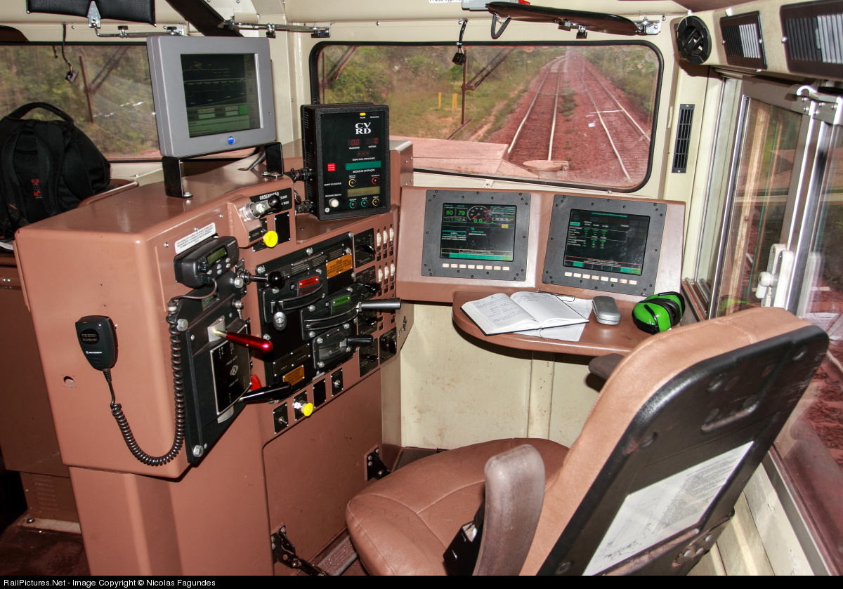 First cabin view of a SD80ACe, looks like a SD70ACe but with operational devices of Vale (CGC and ATC).