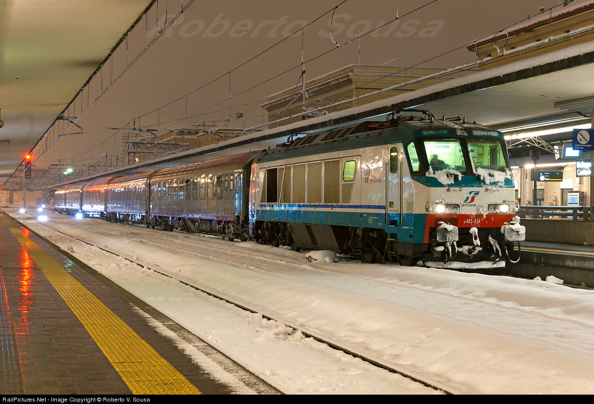 Trenitalia 402.024 with Euronight train from Roma Termini to Wien Meidling in Bologna Centrale station. This train does stop in Orvieto, Chiusi, Firenze Santa Maria Novella, Bologna Centrale, Ferrara, Venezia Mestre, Tarvisio Boscoverde, Villach, Klagenfurt, Leoben, Bruck an der Mur, and Wiener Neustadt. Between Roma Termini and Bologna Centrale this train runs together with the City Night Lines Roma Termini - München Hbf, being separated in two trains.