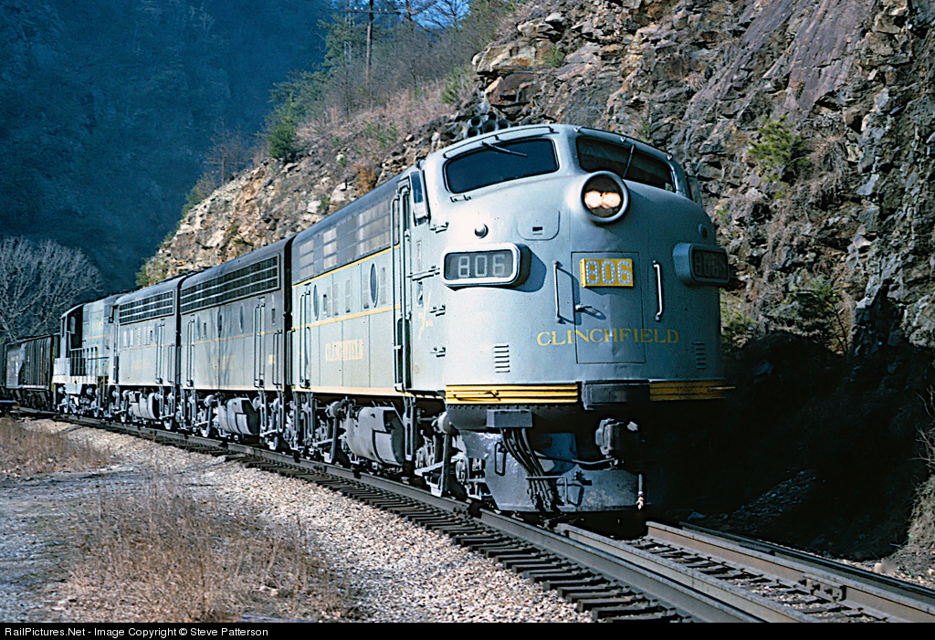 Clinchfield 806 and its EMD mates left Erwin less than 6 miles behind with coal Train 22 to get a run for the Blue Ridge. The train is about the cross Tennessee's Nolichucky River behind the camera at Unaka Springs and begin its 47-mile climb in earnest on Jan. 8, 1965.