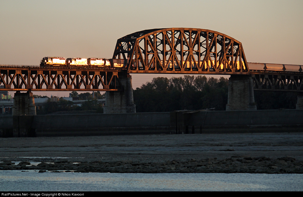 A trio of CSX 4 axles rumble north above the Ohio River in the last light of day. One doesnt get a sense of how big this bridge is until the train starts across
