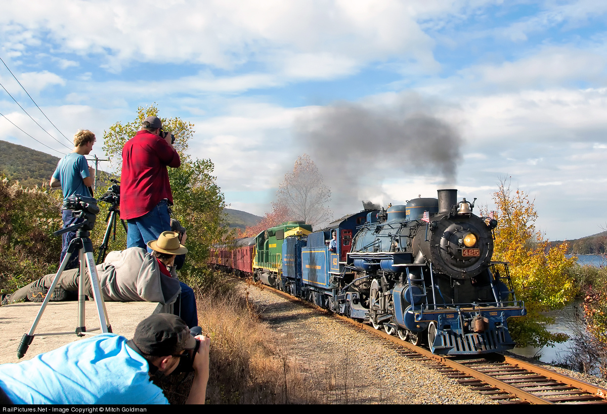 | R&N #425 leads an Autumn Leaf Excursion past the dam at Hauto on a sunny Sunday afternoon in October. I always wanted this dam shot and finally was able to find the dam photo line and get the shot which I really like even more with the dam train photographers included! |