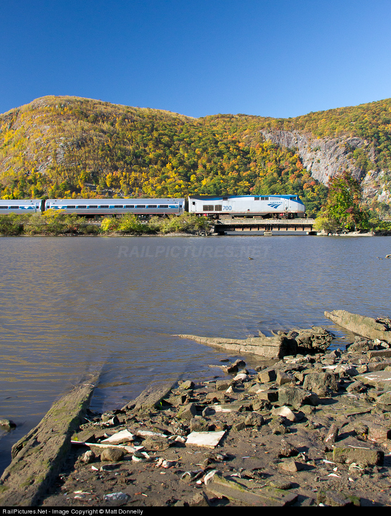 Class leader #700 brings an Empire Service train north toward Albany on an absolutely beautiful fall morning. This photo also depicts some of the slight physical differences in these dual mode FL9 replacements compared to their P40/P42 relatives, including the taller and asymmetrical rear vents, and undercarriage additions.