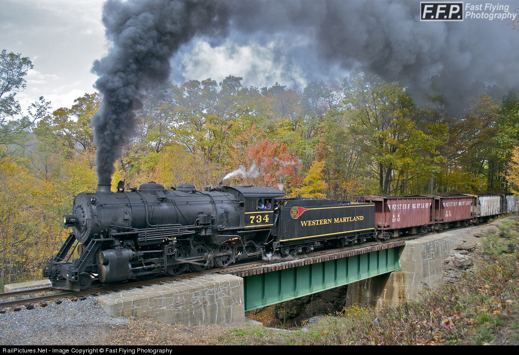 RailPictures.Net Photo: WM 734 Western Maryland Scenic Railroad Steam 2-8-0 at Frostburg, Maryland by Fast Flying Photography