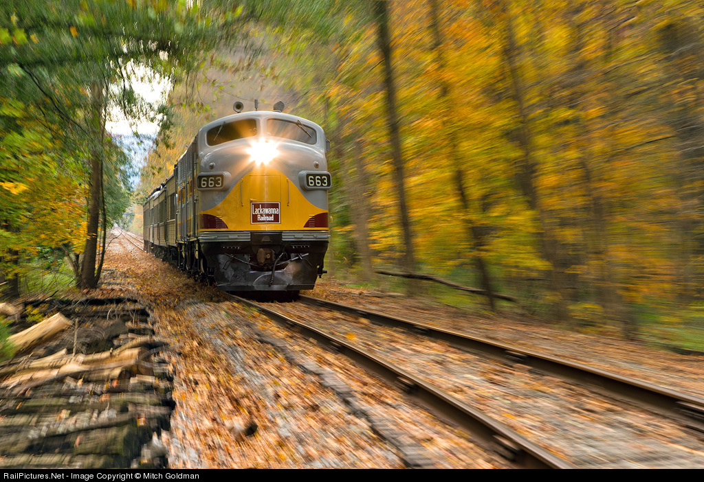 DL&W #663 leads sister #664 on the return trip from East Stroudsburg, PA en route to Steamtown on a colorful Fall day in 2011.