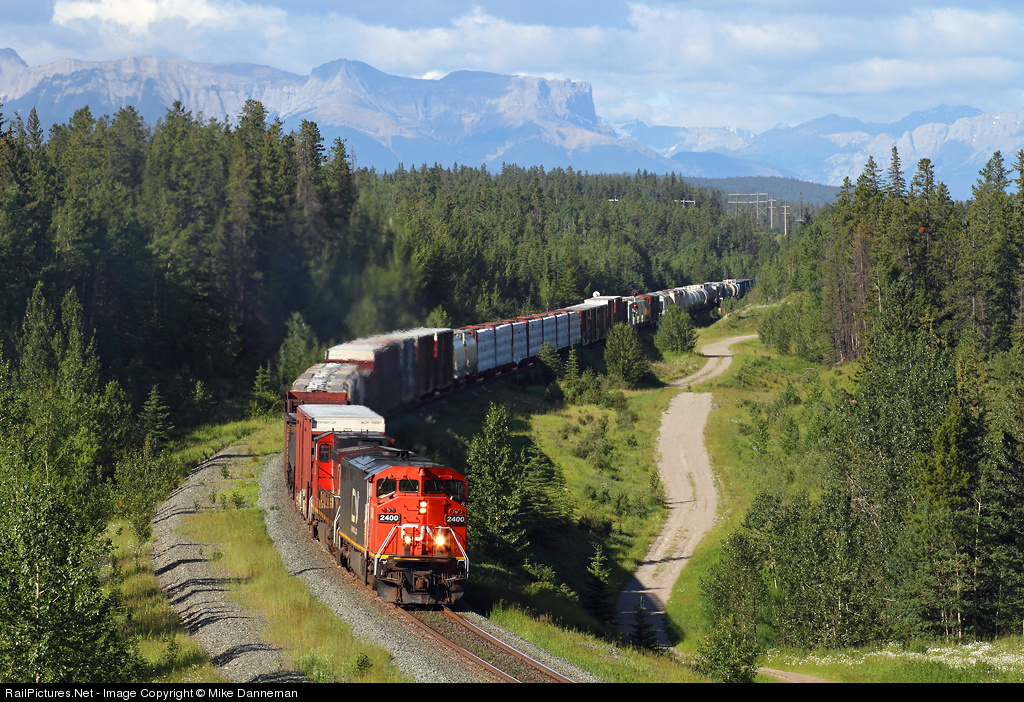 RailPictures.Net Photo: CN 2400 Canadian National Railway GE C40-8M (Dash 8-40CM) at Pedley, Alberta, Canada by Mike Danneman