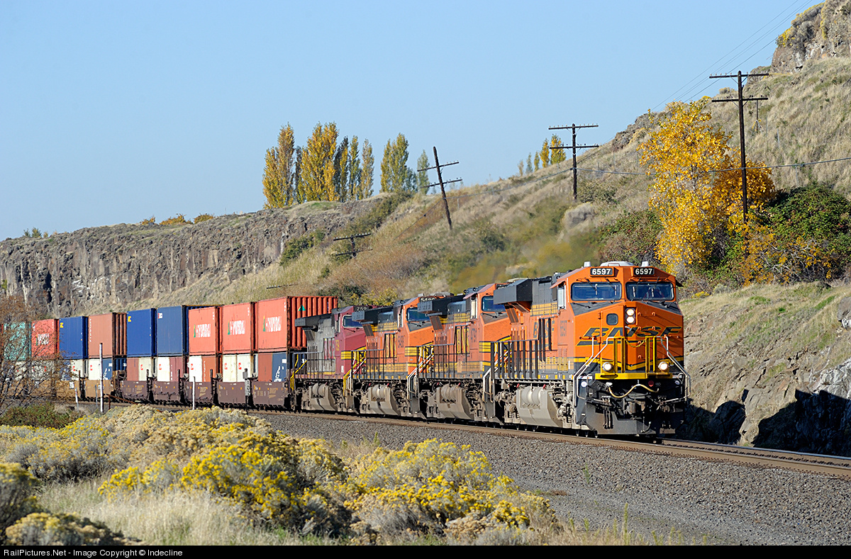 RailPictures.Net Photo: BNSF 6597 BNSF Railway GE ES44C4 at Avery, Washington by Indecline