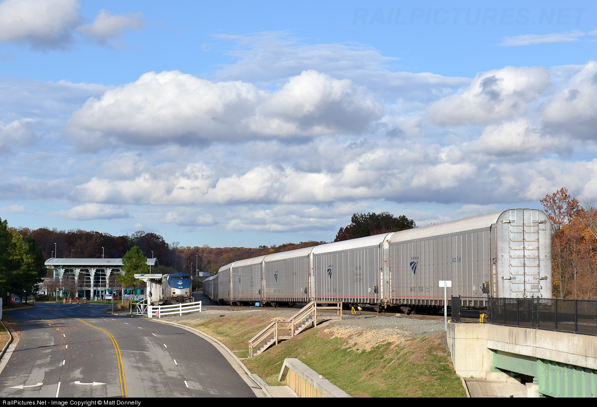 | The southbound Auto Train is being prepared for departure. The passenger portion of the train is behind two P40s while the loaded auto carriers are assembled on another track to be added to the rear of the train. The modern station facility can be seen on the left. |