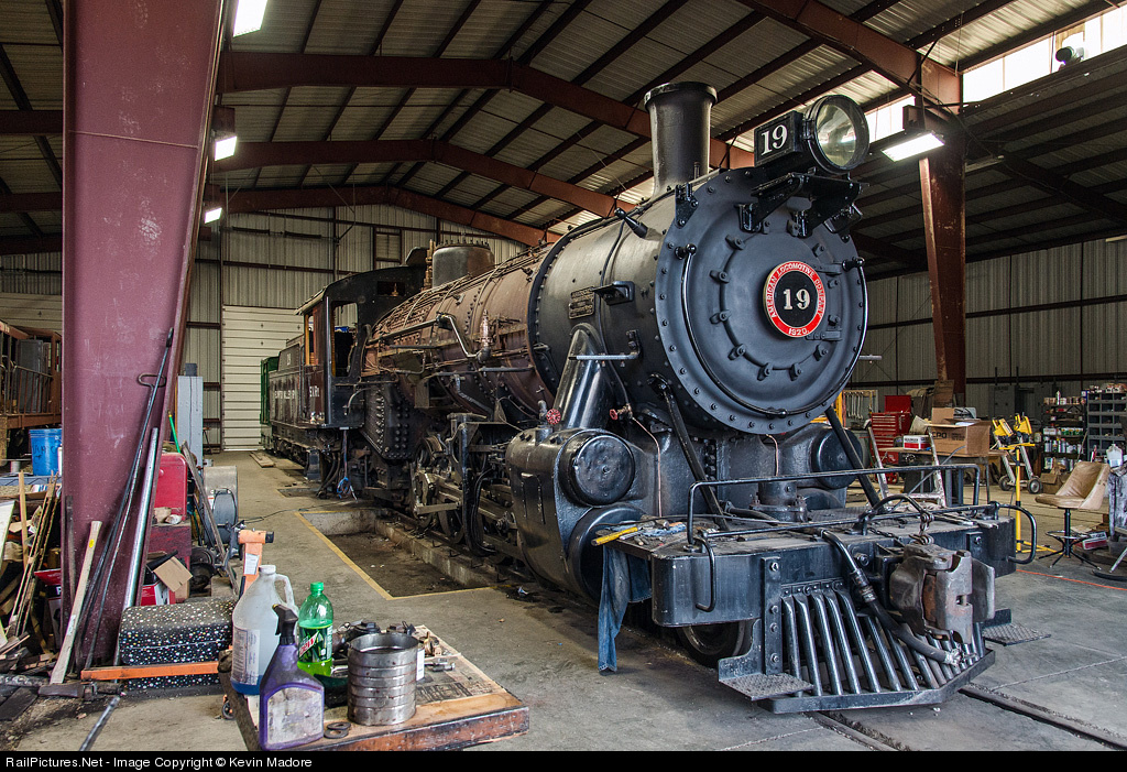 The 19 and her sister engine, the 20 (stored out of service at the SVRy), are identical locomotives and the only ones that the railroad ever purchased new from the factory. The pair were built in 1920 as wood-burners, but were later converted to burn oil. They served the SVRy for 20 years, until 1940, when the line purchased a pair of big articulated engines. The two quickly became surplus and were sold to the White Pass & Yukon in Alaska. There, they spent another 18 years, hauling freight between Skagway and White Horse. Retired in 1958, the two engines sat unused in the Skagway Yard until 1977, when the restored Sumpter valley Railroad inquired as to whether or not they could be donated back to their home operation. The White Pass agreed and the two were repatriated to Oregon, where they sat until the mid-1990s, when funds finally became available to restore one of them to operation. It was decided that the 19 was in the better condition of the two, so she was given a complete overhaul before going back to work hauling tourists on her home rails in 1996. The recently completed 1,472 was the 19's second since returning to Oregon.