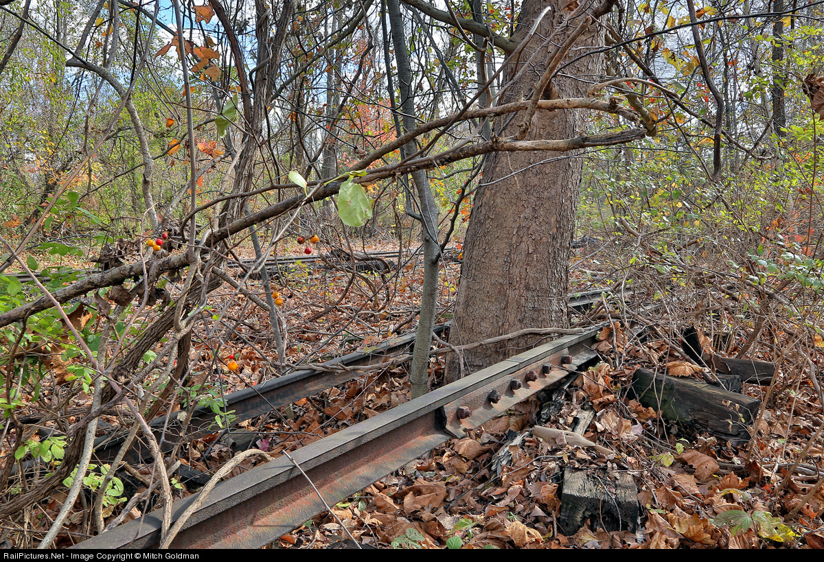 Hmm... I'll bet if you cut the tree down, counted the number of rings, you'd know roughly how long it's been since the last freight car rolled over these rails.