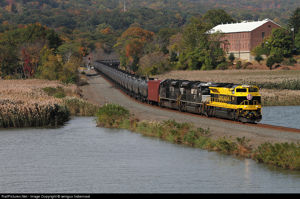 A oil train bringing Bakken crude to the east coast rolls through the south end of Iona Island NY with soild NS power up front including NS 1069, the Virginian!!