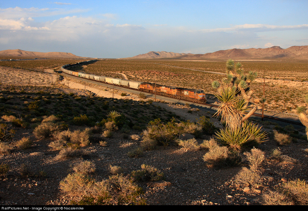 Late afternoon along the Cima Subdivision of the former Los Angeles and Salt Lake...sees this westbound manifest glide downgrade.