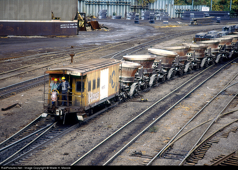A modified Chessie caboose trailing a cut of ladle cars - two sights you probably won't see around Weirton today.