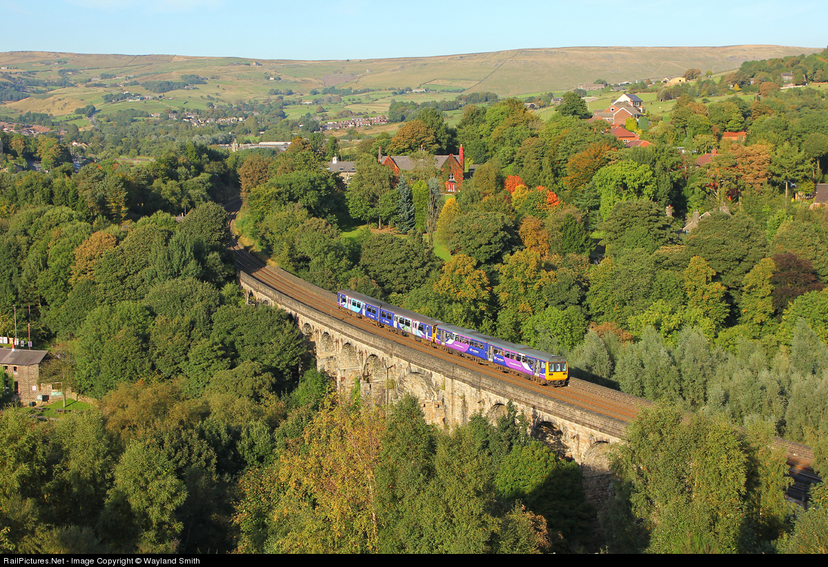 A Northern Rail commuter service crossing Saddleworth Viaduct.