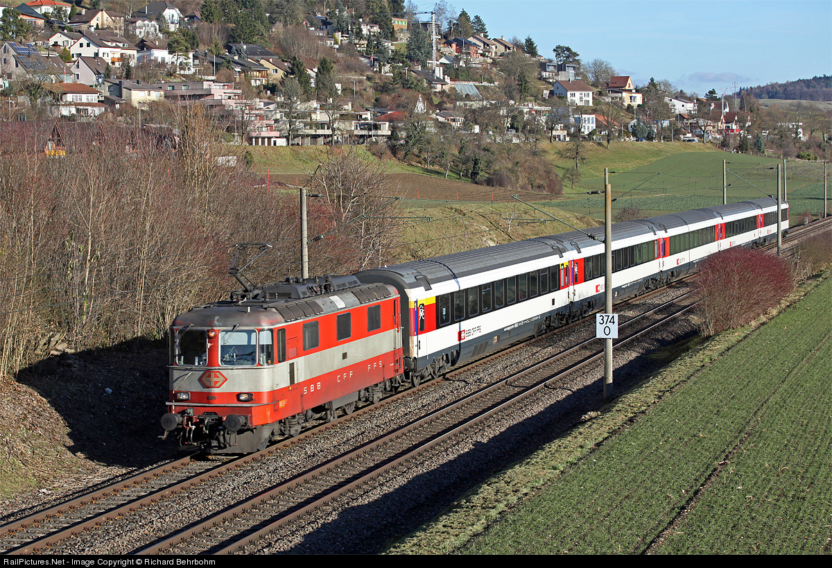 "Swiss Express" Re 4/4 II No 11109 is pulling IC 185 Stuttgart – Zürich.