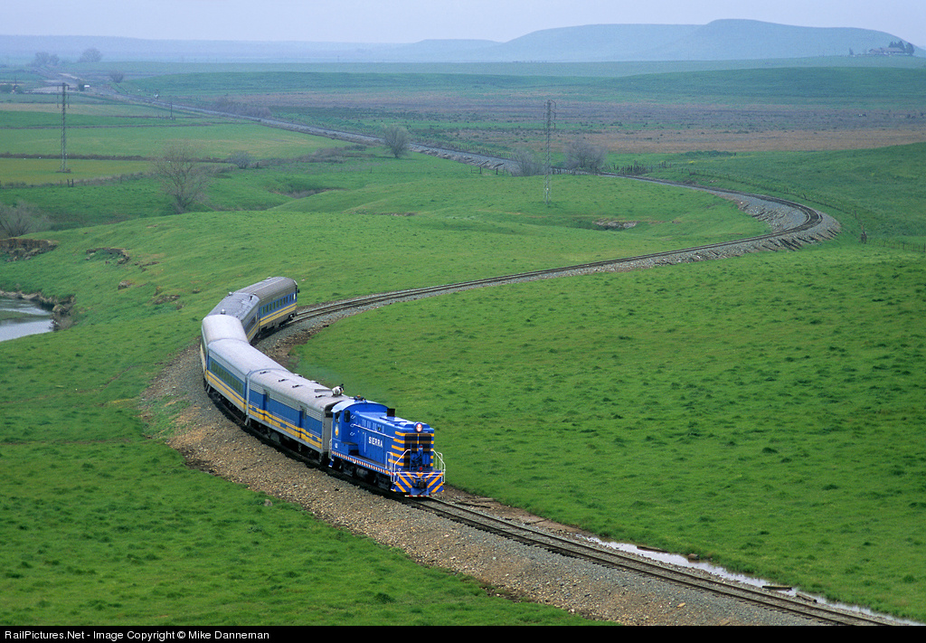 Green hills of Paulsell After plenty of springtime rainfall, Sierra Railroad Baldwin S-12 No. 42 leads a five-car passenger extra through the verdant hills east of Paulsell at mile 12.2. This train was operated as a special run on the Sunday after Winterail on March 13, 2005.