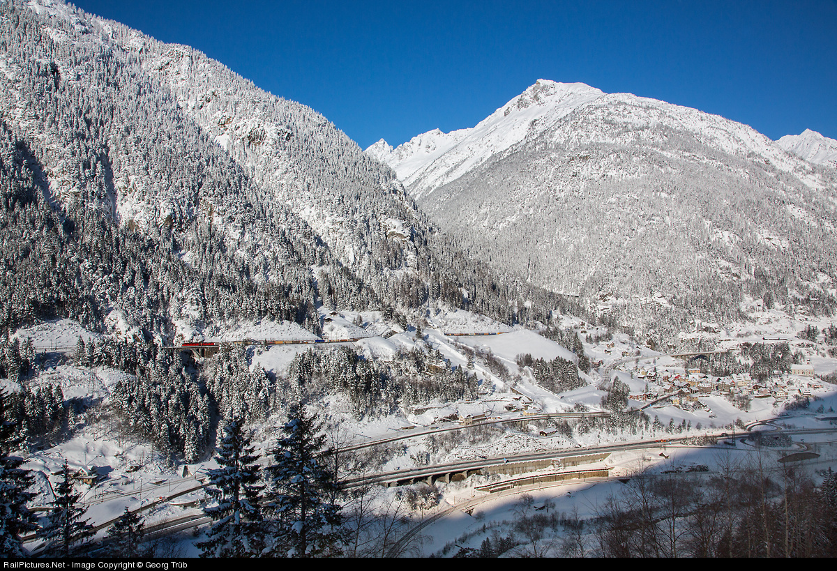 Merry Christmas to all visitors and contributors of Railpictures with this winter wonderland on the Gotthard north ramp in Wassen! On the uppermost level a southbound freight, on the middle level above the highway the station of Wassen and on the lowest level the famous Wattinger (photo-) curve.