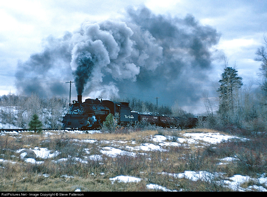 Having just left Chama, N.M., D&RGW 488 (with a helper on the rear) gets a run at Cumbres grade with the second turn of the day, Dec. 20, 1963. In those days it usually required three trains to get the eastbound cars up to Cumbres Pass to be assembled into one train downgrade on to Alamosa. It was the last winter D&RGW would operate the narrow gauge.