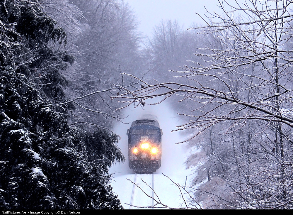 Despite the heavy snow, 681 is right on time as it approaches its destination of Brunswick, Maine.