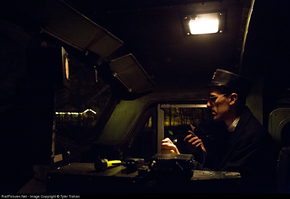 It's the end of an evening on the Naugatuck Railroad. Hundreds of passengers have enjoyed today's three train rides with Santa Claus and his elves, and now it's time to put the train away. U23B #2203 is the power today and FL9 #2019 is on the rear of the train for the long reverse move south. The engineer is in the shoving locomotive, guided by radio by the brakeman or conductor in 2019. On this deadhead move, that falls to the latter, still dressed up from punching tickets. Hand on the horn for an approaching crossing, he radios back to the engineer. "2203, clear eight cars south, crossing in six, protection activated."