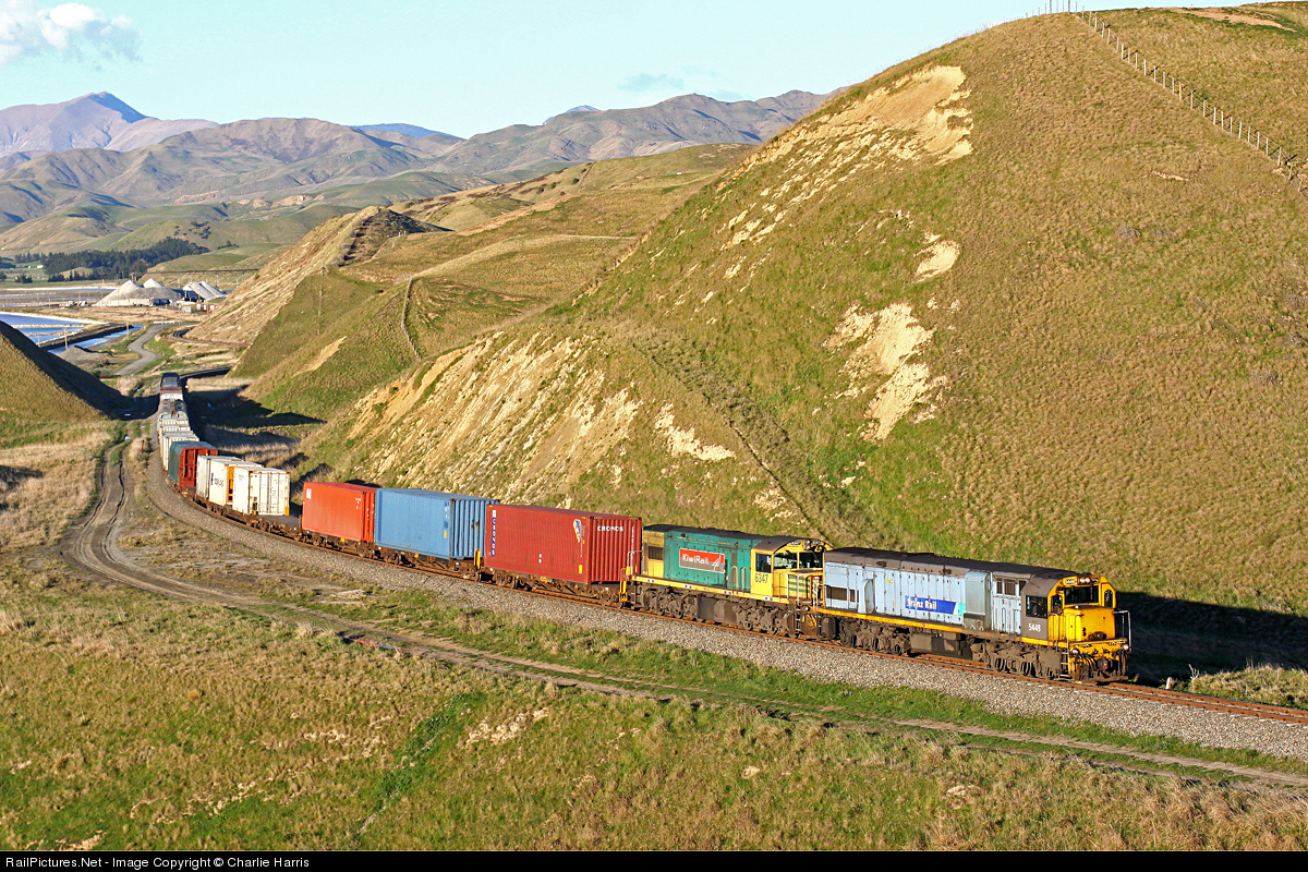 Trains on 3' 6" (1.067m) track from Whangarei to Bluff with virtually heritage rebuilt EMD and GE locomotives still the mainstay power. The network was privatized in 1990's and operated by Toll until 2008 when state owned KiwiRail was established.