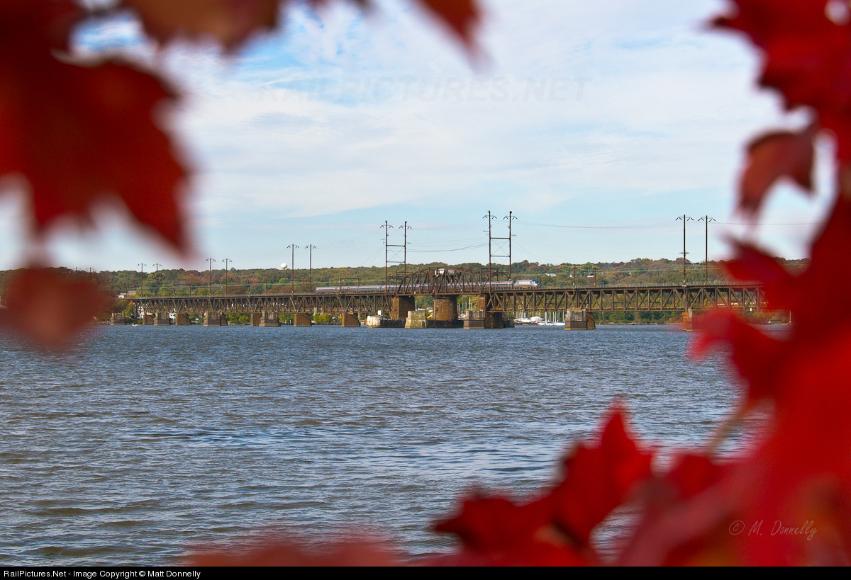 A Northeast Regional heads north over the Susquehanna River in late October.