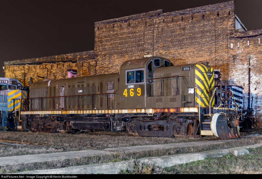 | Originally acquired by the Detroit & Mackinac Railway in November of 1946, the ex-Lake State Railway Alco RS-2 469 is seen outside the Saginaw, Michigan roundhouse of the LSRC in storage for a private owner. This was the last operable RS-2 in the US and was saved from the scrappers torch. It is the only Alco remaining on the property of the LSRC. |