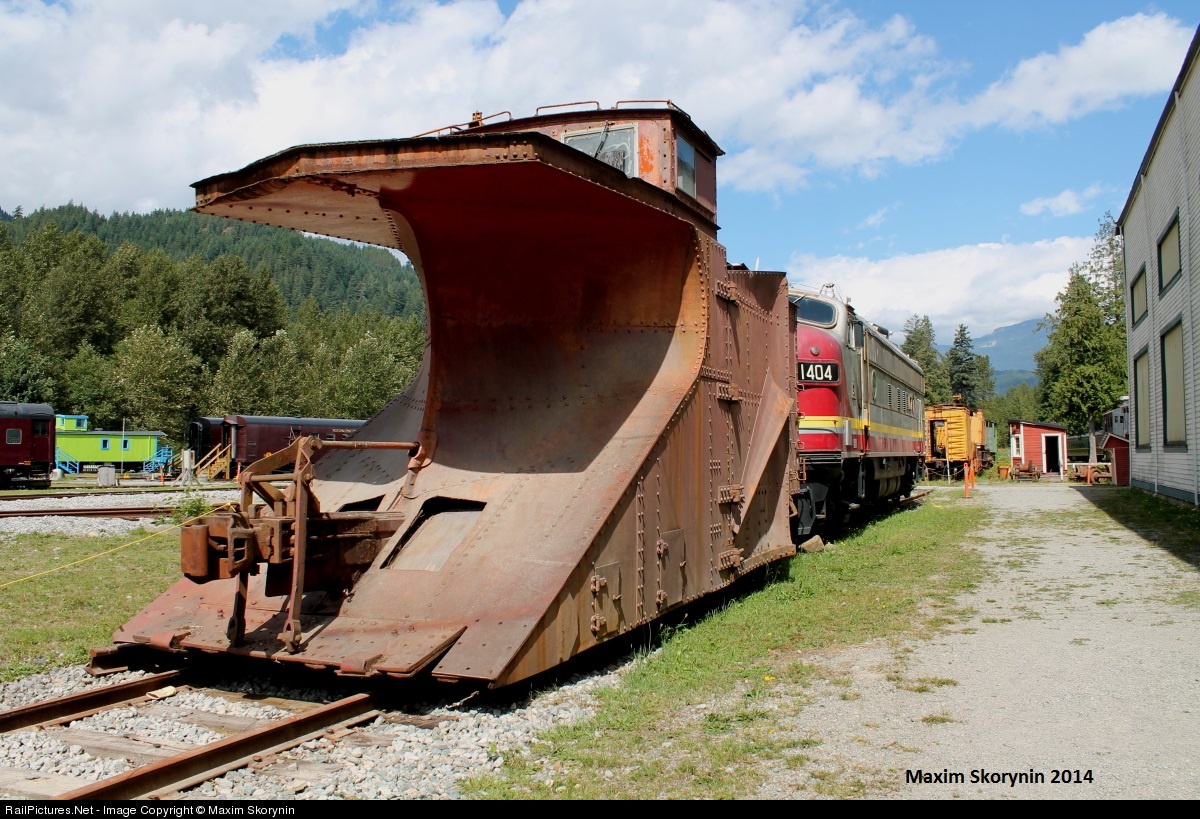 A old retired snowplow hooked up to Santa Fe 1404 sit in a railway museum on the outskirts of Squamish, British Columbia.