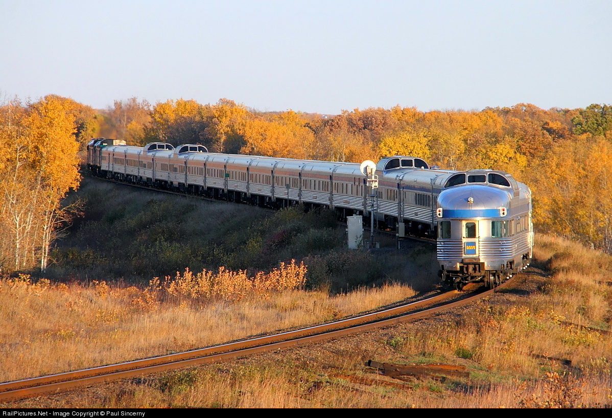 VIA's eastbound "Canadian" departs Rivers for Winnipeg in the last rays of sunlight.