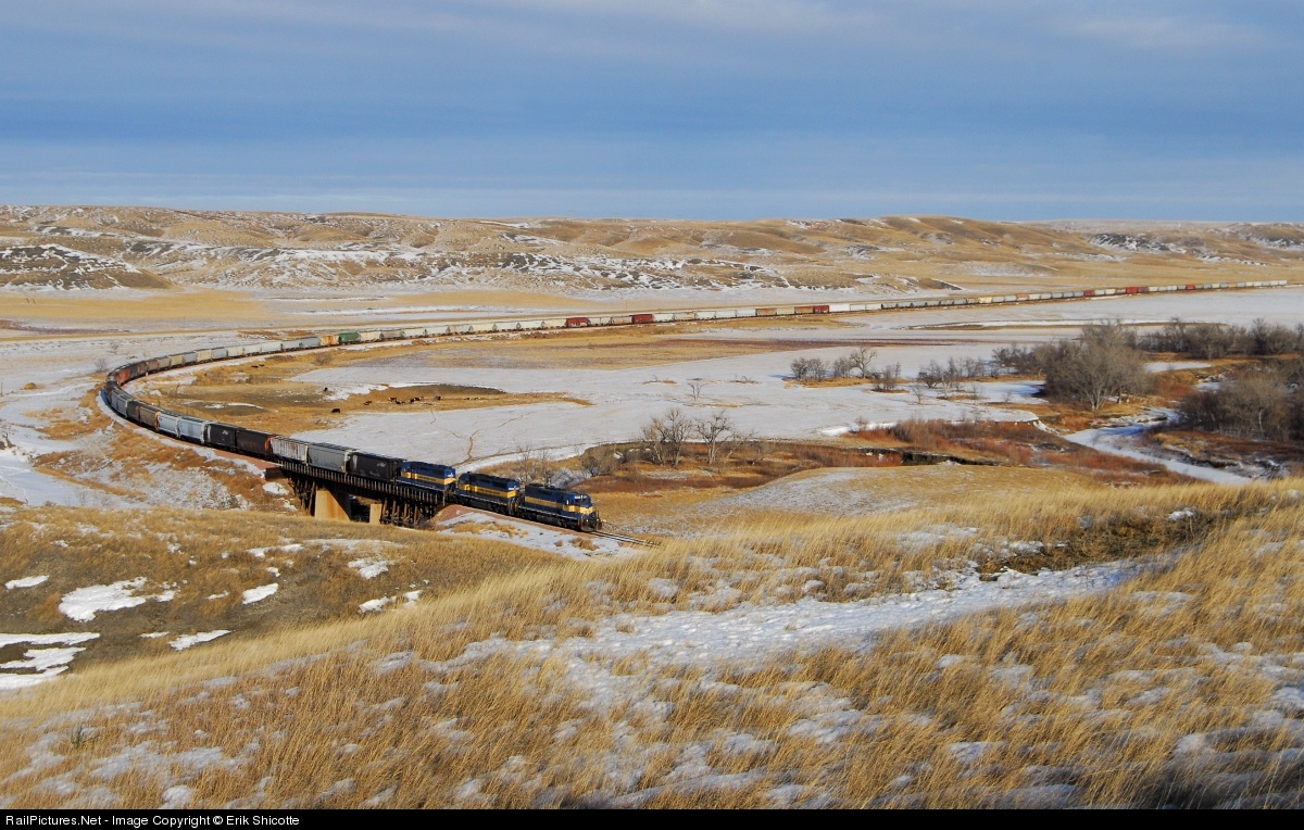 High above the former DM&E (ex-CNW) and the Bad River, one has to take a minute to catch their breath and take it all in. With 96 cars in tow, CP 571 rolls towards Rapid City on a wonderful winter afternoon.